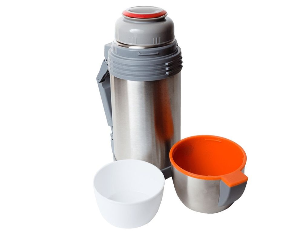 Двойные стенки термоса позволяют долго сохранять температуру, как холодного, так и горячего напитка. Корпус и внутренняя колба термоса изготовлены из высококачественной пищевой нержавеющей стали. Двойная широкая пробка термоса и его горловина, позволяют хранить в термосе, как напитки, так и еду. Соку расположена ручка, которая раскладывается и убирается одним движением. При производстве используется высококачественное, экологически безопасное пищевое сырье.