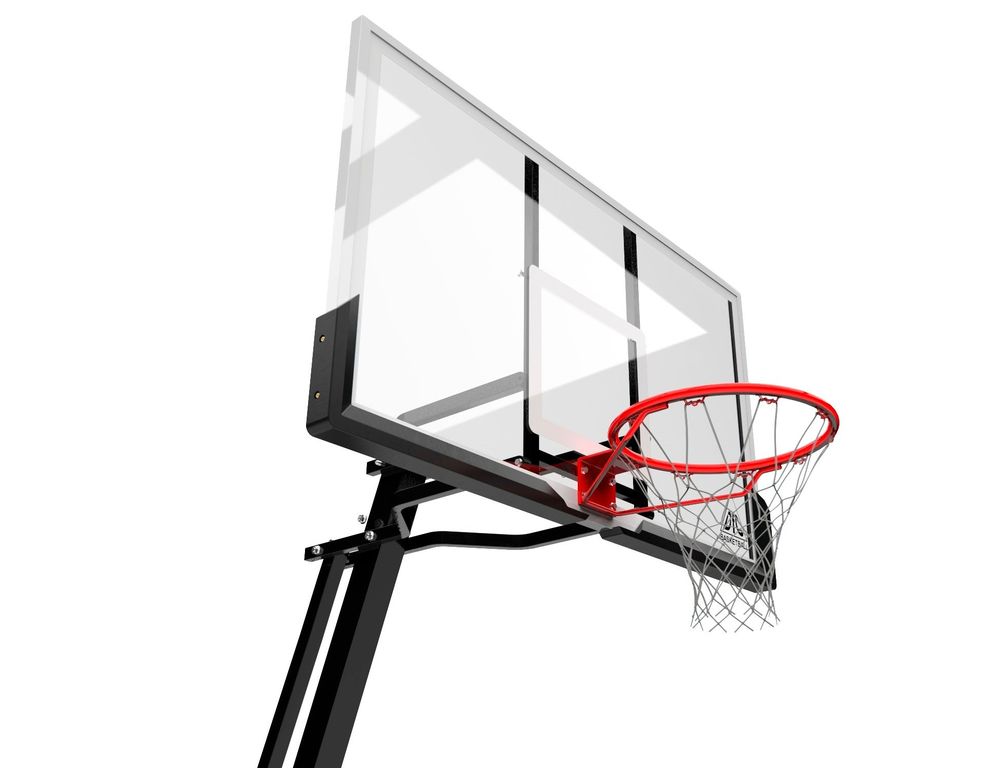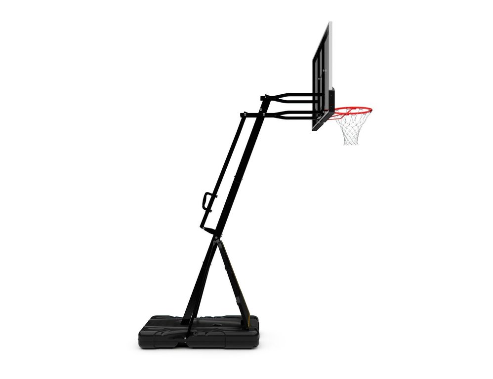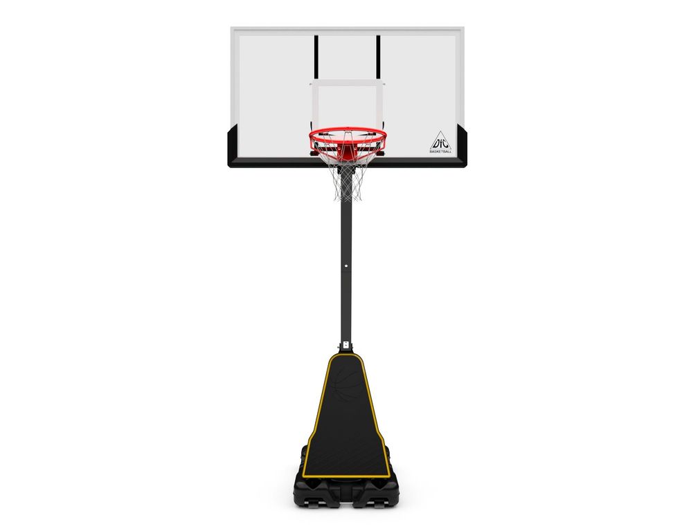 Портативные баскетбольные стойки серии DFC REACTIVE совмещают в себе мобильность и обеспечивают отскок мяча, как на профессиональной площадке. Благодаря усиленной конструкции удалось добиться увеличенного вылета щита, при сохранении компактности размещения. Он регулируется в диапазоне от 230 до 305 см, имеет защитное покрытие Poly Pade в нижней части. В основание стойки (объем 114,7 л) необходимо залить воду или засыпать песок в качестве утяжелителя. Стойка отлично дополнит ваш задний двор или площадку у дома. Она оборудована щитом из поликарбоната толщиной 3-4 мм. В комплекте идет кольцо без амортизации. Регулировка высоты стойки осуществляется с помощью телескопической ручки.