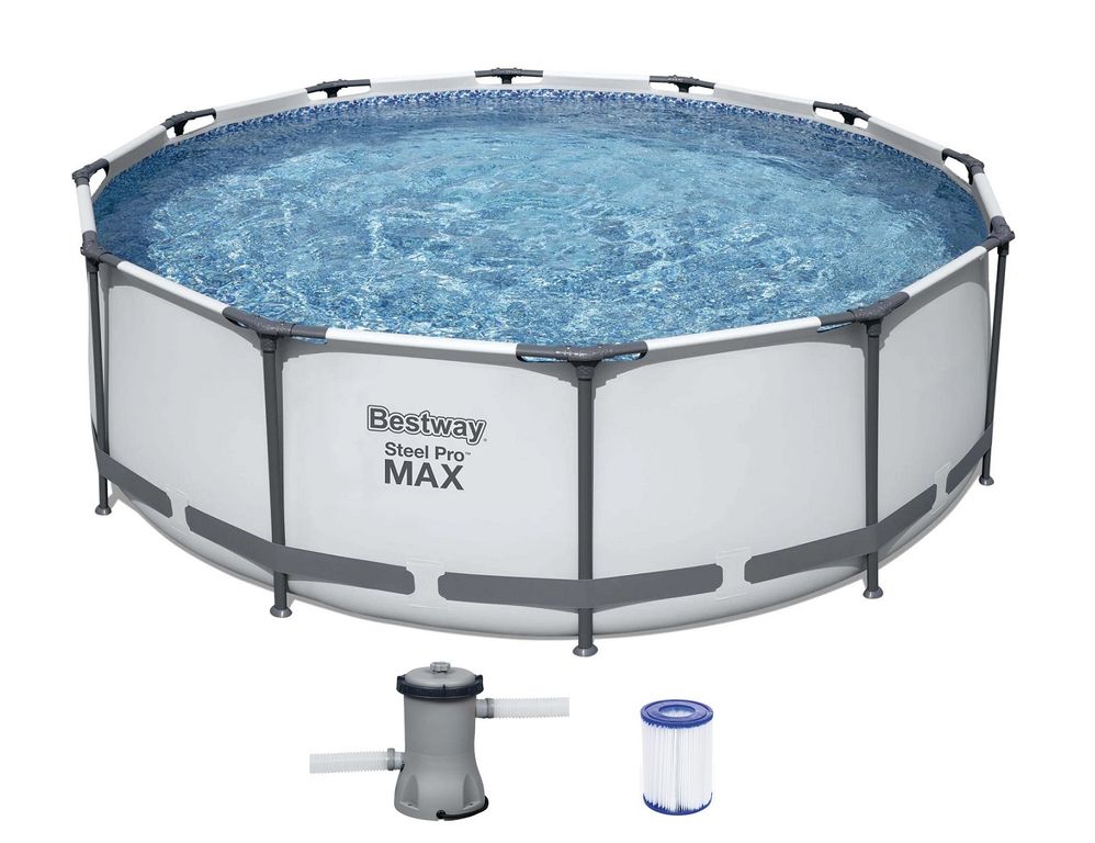 Каркасный бассейн Bestway Steel Pro Max, артикул 56260, отличается высокой прочностью и устойчивостью. Чаша выполнена из высококачественного трехслойного ПВХ: два слоя плотного винила и между ними сетка из полиэстера для особой прочности. Цвет чаши бассейна снаружи светло-серый, внутренняя поверхность имеет расцветку под мозаику. Каркас металлический, покрытый предотвращающим появление коррозии слоем пластика. Не требует бетонирования и подготовки ямы, все, что нужно, это плоская, горизонтальная площадка. Сезонный бассейн (рекомендуется разбирать на холодное время года) обладает простой конструкцией - может быть легко разобран и собран заново. Время сборки и подключения бассейна составляет около 45 мин. Удобный сливной клапан позволяет присоединить садовый шланг, что дает возможность слить воду в любое место. В комплект поставки входят фильтр-насос производительностью 2006 л/ч для очистки и циркуляции воды, картридж, шланги и хомуты, необходимые для подключения к бассейну.