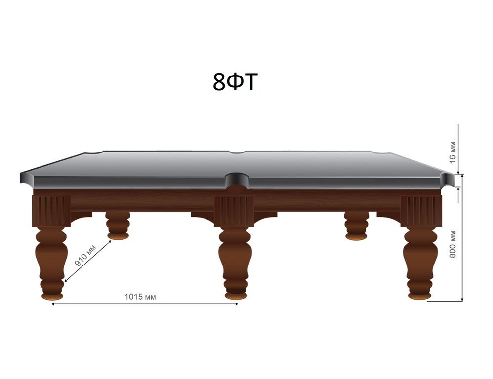 | Пирамида / Пул | 8 фт | Береза/сосна/МДФ. Конструкция сборная | ДСП, 16 мм | 6 | 140 кг |
