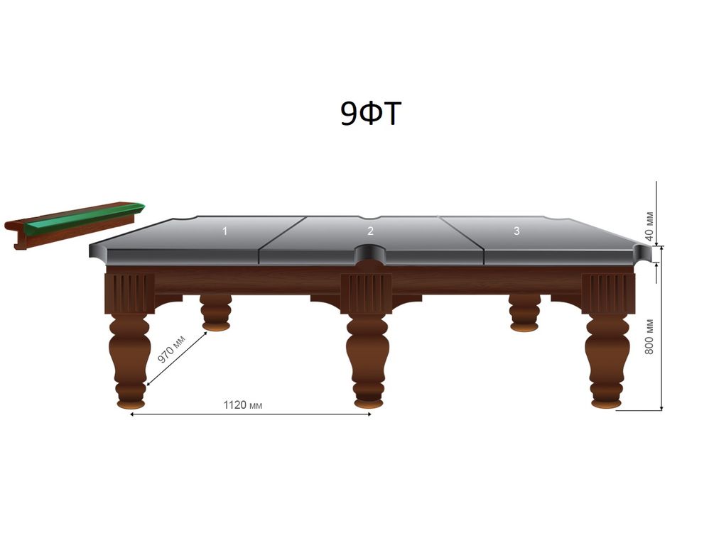 | Размер игрового поля 9-ти футового стола: 2,54х1,27 м. Бильярдная комната должна быть не меньше 6,04х4,77 м. | |||||