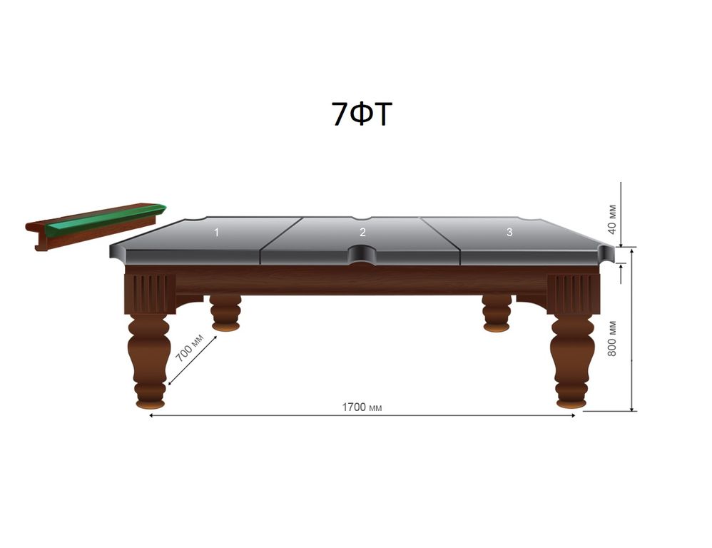 | Размер игрового поля 7-и футового стола: 2,00х1,00 м. Бильярдная комната должна быть не меньше 5,10х4,10 м. | |||||