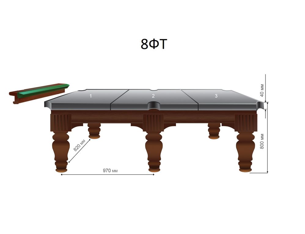 | Размер игрового поля 8-и футового стола: 2,24х1,12 м. Бильярдная комната должна быть не меньше 5,74х4,62 м. | |||||