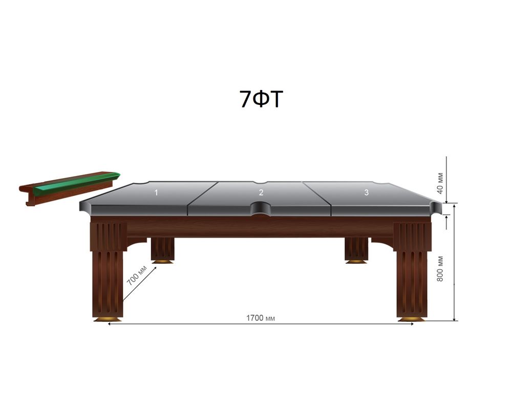 | Размер игрового поля 7-и футового стола: 2,00х1,00 м. Бильярдная комната должна быть не меньше 5,10х4,10 м. | |||||