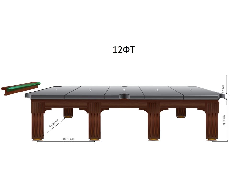 | Размер игрового поля 12-ти футового стола: 3,50х1,75 м. Бильярдная комната должна быть не меньше 7,00х5,25 м. | |||||