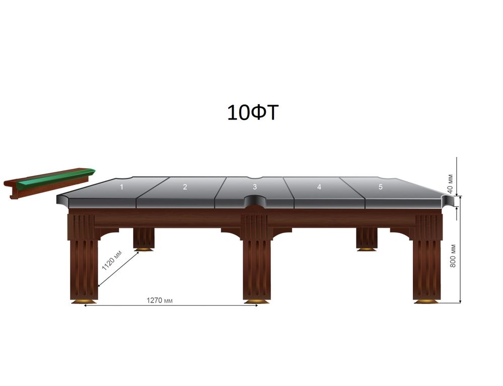 | Размер игрового поля 10-ти футового стола: 2,84х1,42 м. Бильярдная комната должна быть не меньше 6,34х4,92 м. | |||||