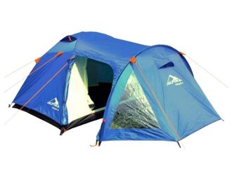 Трекинговая четырехместная палатка с дополнительным входом сзади и усиленной вентиляцией.