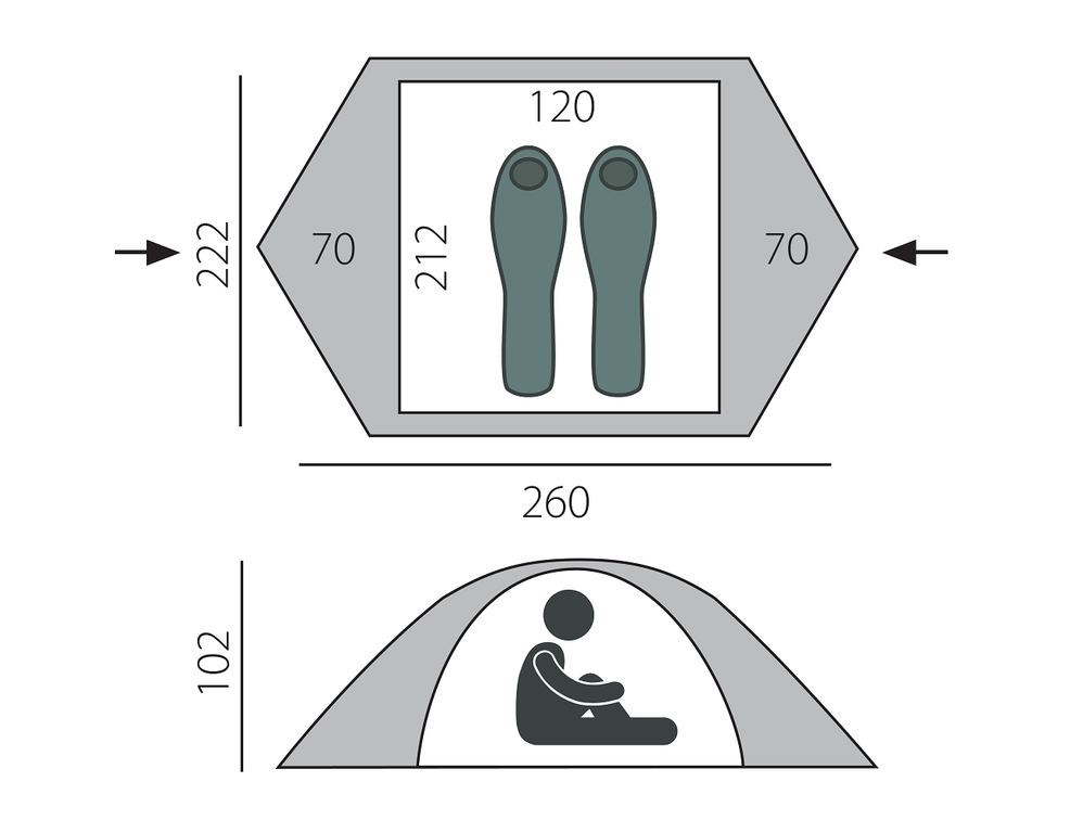 - Внешний тент палатки устойчив к ультрафиолетовому излучению