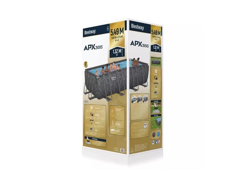 Каркасный бассейн Bestway APX 365 561KA предлагает большое пространство для развлечений всей семьи. Устойчивые к разрыву и УФ-излучению боковые стенки из материала TriTech надежно выдерживают нагрузки, вызванные весом и движением. Для сборки стального каркаса и покрытия бассейна требуется 2-3 человека. Наружные стены под темный мрамор, внутренняя облицовка под синий мрамор.