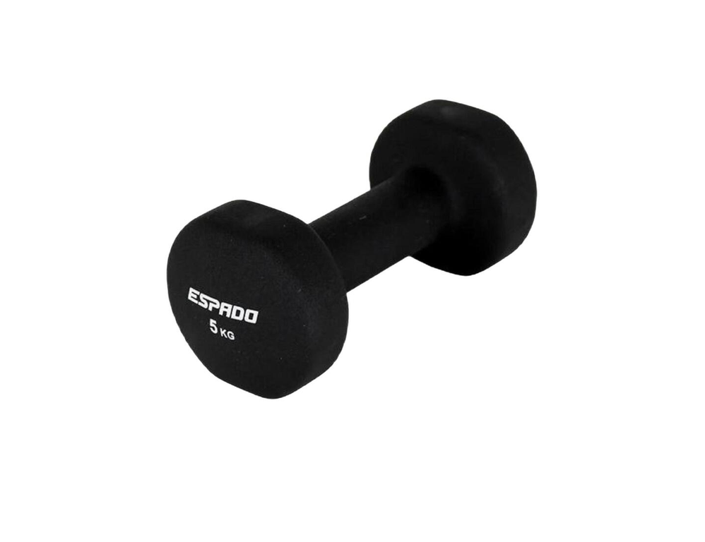 Гантель ES1115 — гантель с неопреновым покрытием бренда Espado, обладающая хорошим сцеплением с ладонью. Особенность покрытия — поглощение материалом части влаги с ладоней. Гексагональная форма устраняет проблему перекатывания гантели по полу. Неопреновые гантели приятные на ощупь, не холодные для ладоней и имеют привлекательный внешний вид. Они идеально подходят для дома, так как не царапают пол, минимизируют шум от ударов об пол. Гантель — незаменимый снаряд для тренировки мышечного каркаса человека. Используется в фитнесе, бодибилдинге, функциональном тренинге (в том числе CrossFit), лечебной физкультуре, беге и других спортивных дисциплинах. Рекомендуется приобретать в паре.