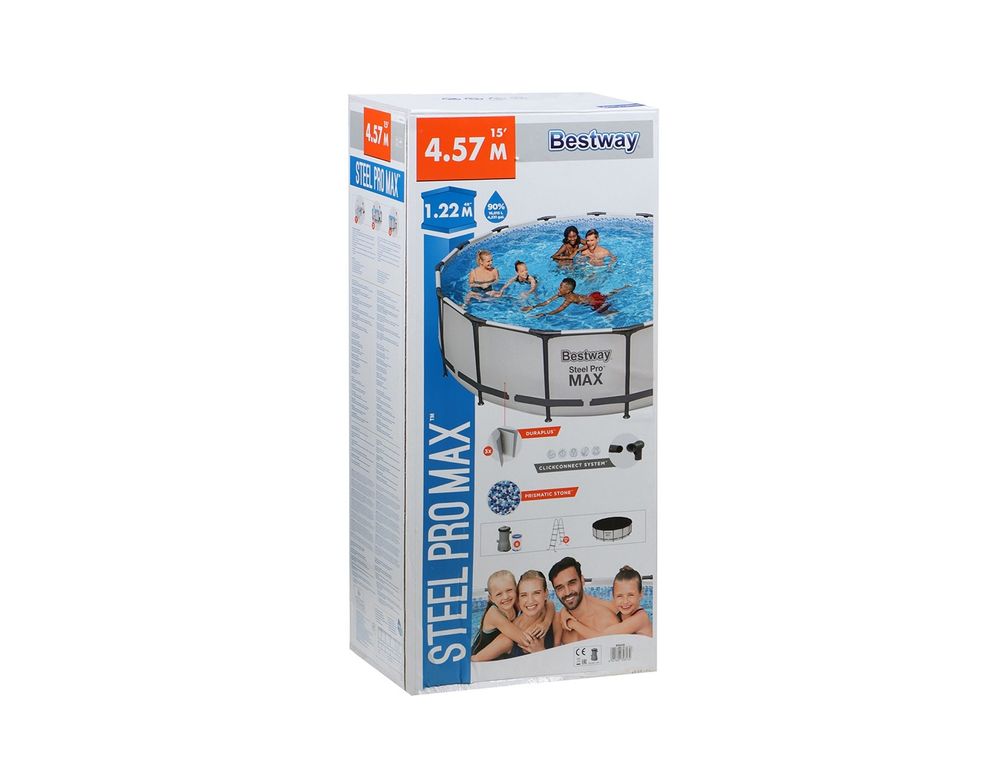 Каркасный бассейн от производителя Bestway – отличный качественный продукт. Особенностью этого бассейна является простая и быстрая установка, которая не займет у вас много времени и сил. Каркасные бассейны Bestway Steel Pro Max являются улучшенной версией моделей серии Steel Pro. Усиленный каркас повышает жёсткость изделия, делая его еще долговечнее и устойчивее. В отличие от прошлых моделей Steel Pro с круглыми трубками, серия MAX имеет каркас из овальных трубок увеличенной площади. Покрытие Framelink защищает каркас от ржавчины, гарантирует высокую надёжность и долговечность всей конструкции. Система Seal and Lock System обеспечивает надёжную фиксацию всех элементов. Чаша бассейнов выполнена из трёхслойного армированного поливинилхлорида повышенной прочности Tritech. Сливной клапан позволяет присоединить шланг для спуска воды. Установка чаши не требует бетонирования и подготовки. Всё, что ей нужно – это плоская горизонтальная поверхность. Предусмотрен сливной клапан, который подсоединяется к садовому шлангу. В комплектации к резервуару идёт фильтр-насос, лестница, тент. Производительность насоса – 3.028 л. Чашу рекомендуется разбирать на холодное время года и хранить в сухом месте. Бассейн Bestway 56438 станет лучшим приобретением для прекрасного времяпрепровождения и замечательного отдыха.