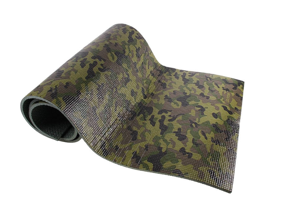 Коврик туристический ППЭ 3008 ламинированный декоративной плёнкой, предназначен для походов, выездов за город, рыбалки, физических занятий. Изготовлен из физически вспененного полиэтилена марки ППЭ Isolon 300. Плотность 33 кг/куб.м. С одной стороны нанесена декоративная полипропиленовая плёнка с камуфлированным рисунком, которая даёт дополнительное упрочнение ковра. Водонепроницаемый, долговечный, экологически безопасен. Два слоя плотного изолона, обеспечивают хорошую теплоизоляцию и создают эффект тёплого пола. На нём можно сидеть, лежать, спать без боязни за своё здоровье.
