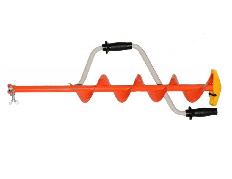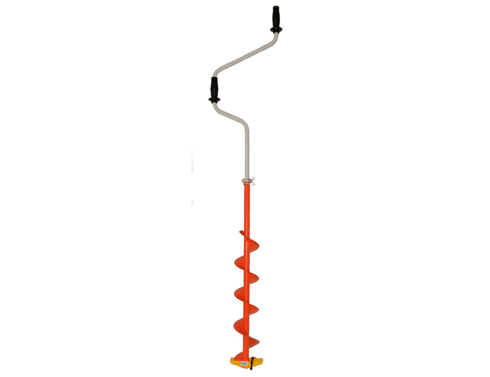 Рукоятка-двуручная для одновременного вращения ледобура двумя руками. Форма рукоятки в сложенном положении позволяет очень удобно размещать ледобур на плече при переноске.