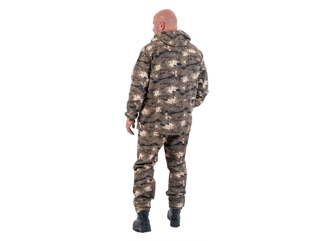 Свободного кроя костюм, не стесняющий движений, из легкой и в то же время достаточно плотной ткани, способной защитить от укусов насекомых, царапин от ветвей в лесных зарослях. Отлично подойдет для летних походов, рыбалки, тактических игр.