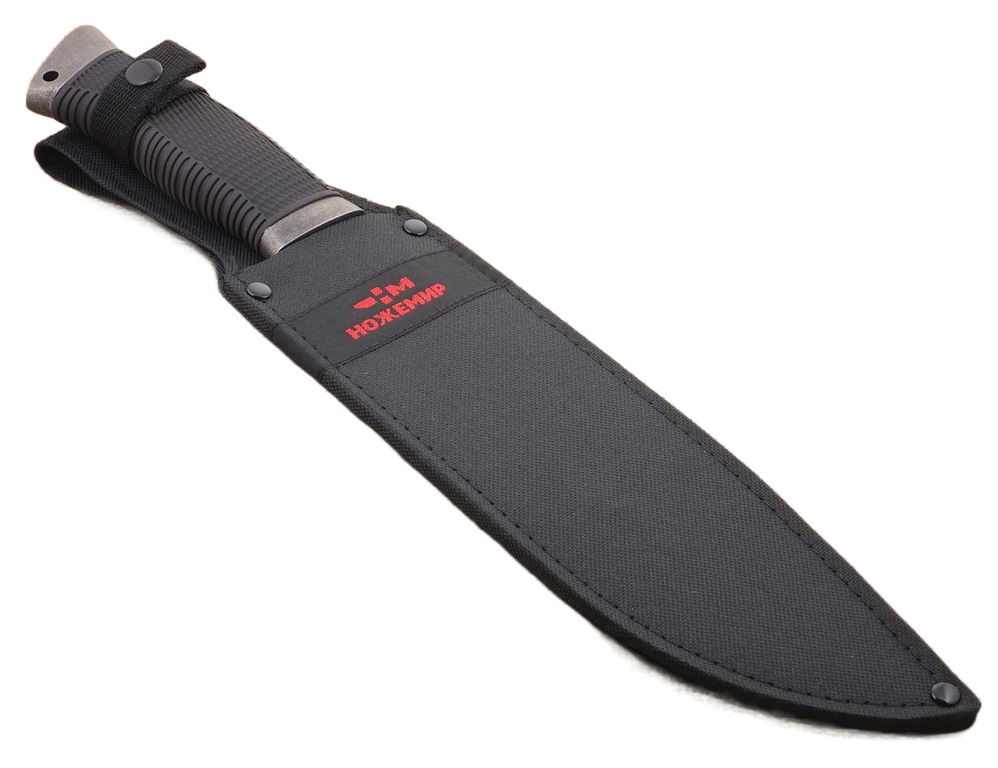 Мачете туристический Ножемир Русич H-249 послужит для туризма и походов. Прочная сталь 440 обладает хорошей устойчивостью к процессам коррозии. Рукоять изготовлена из металлического сплава с резиновым покрытием. Предусмотрено специальное отверстие для крепления темляка. В комплекте идут защитные ножны из кордуры от грязи и влаги. Рукоять можно разобрать - на тыльнике предусмотрен винт, также служащий для укрепления хвостовика лезвия при возникновении люфта.