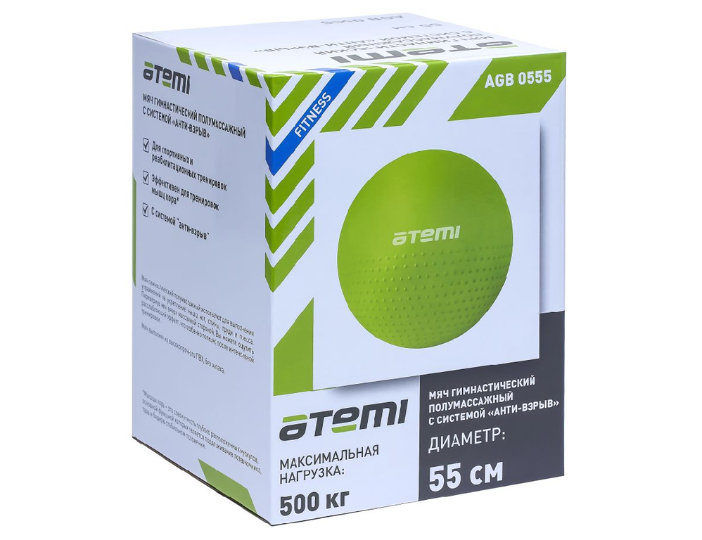 Мяч гимнастический полумассажный Atemi AGB0555 анти-взрыв 55 см используют для выполнения упражнений на укрепление мышц ног, спины, груди, пресса. Перевернув мяч вверх массажной стороной, вы сможете ощутить расслабляющий эффект от соприкосновения с поверхностью, что особенно полезно после интенсивной тренировки. Мяч выполнен из высокопрочного ПВХ, без запахов.