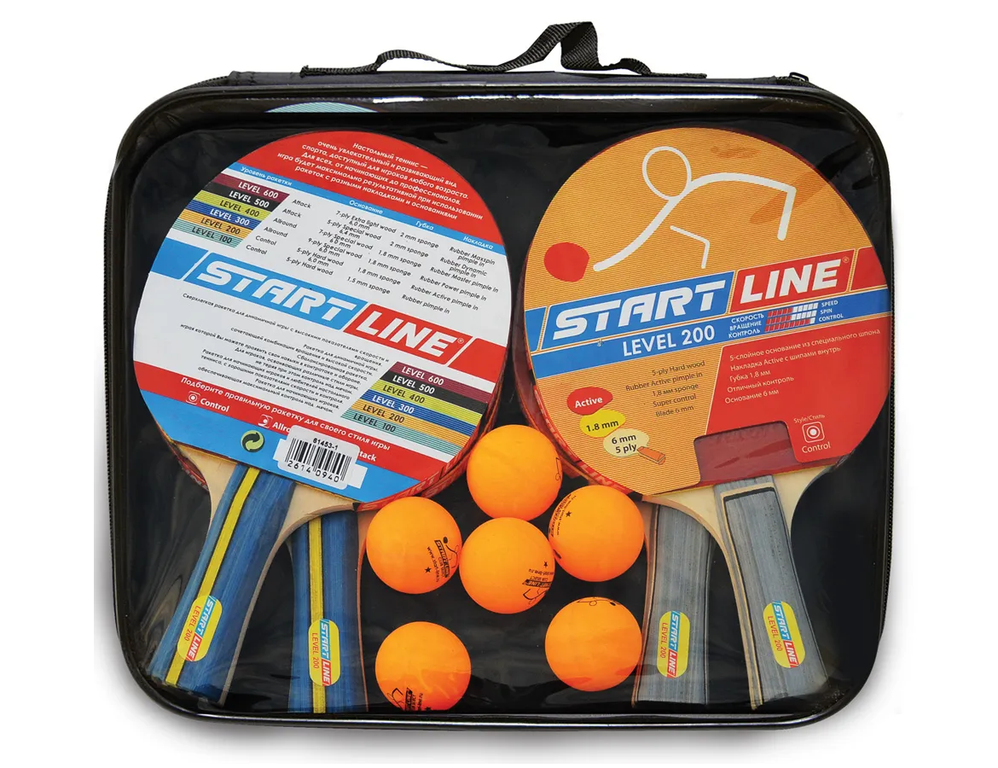 Набор Start Line: 4 Ракетки Level 200, 6 Мячей Club Select, упаковано в сумку на молнии с ручкой