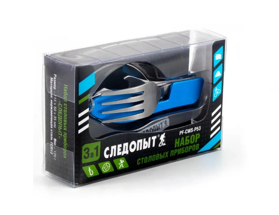 Набор столовых приборов Следопыт PF-CWS-P53 одно из главных вещей, которые нужно взять с собой во время путешествия. В набор входит столовая ложка, вилка, а также открывашка. Благодаря прочности материалов они подходят для многократного использования и предназначены для одной персоны. Вы можете легко их сложить в свою туристическую сумку или просто в карман. Набор изготовлен из нержавеющей стали.