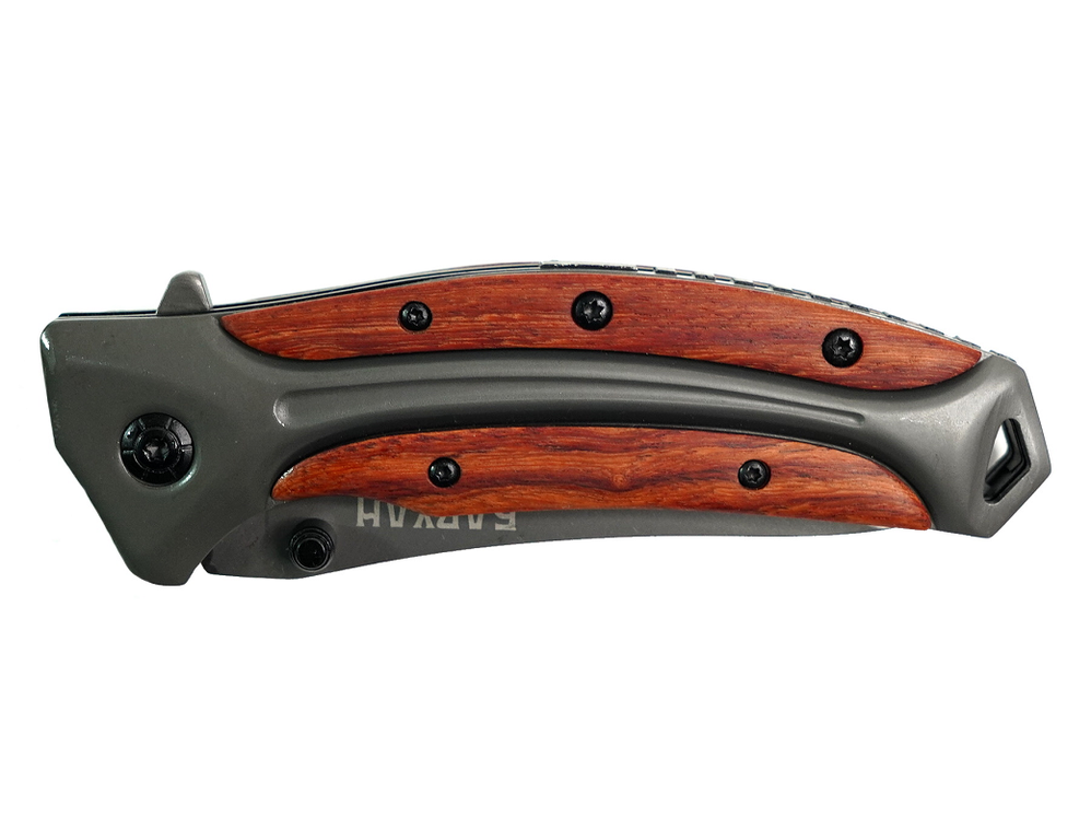 Нож автоматический Ножемир "Чёткий расклад" Бархан (A-215) выполнен из высокопрочного и устойчивого материала. Благодаря компактному размеру и несъёмной клипсе, нож можно закрепить на ремне или кармане и иметь его в быстром доступе. Рукоять изготовлена из высокопрочного материала - дерево и металл. Нож предназначен для туристических походов, рыбалки и охоты.