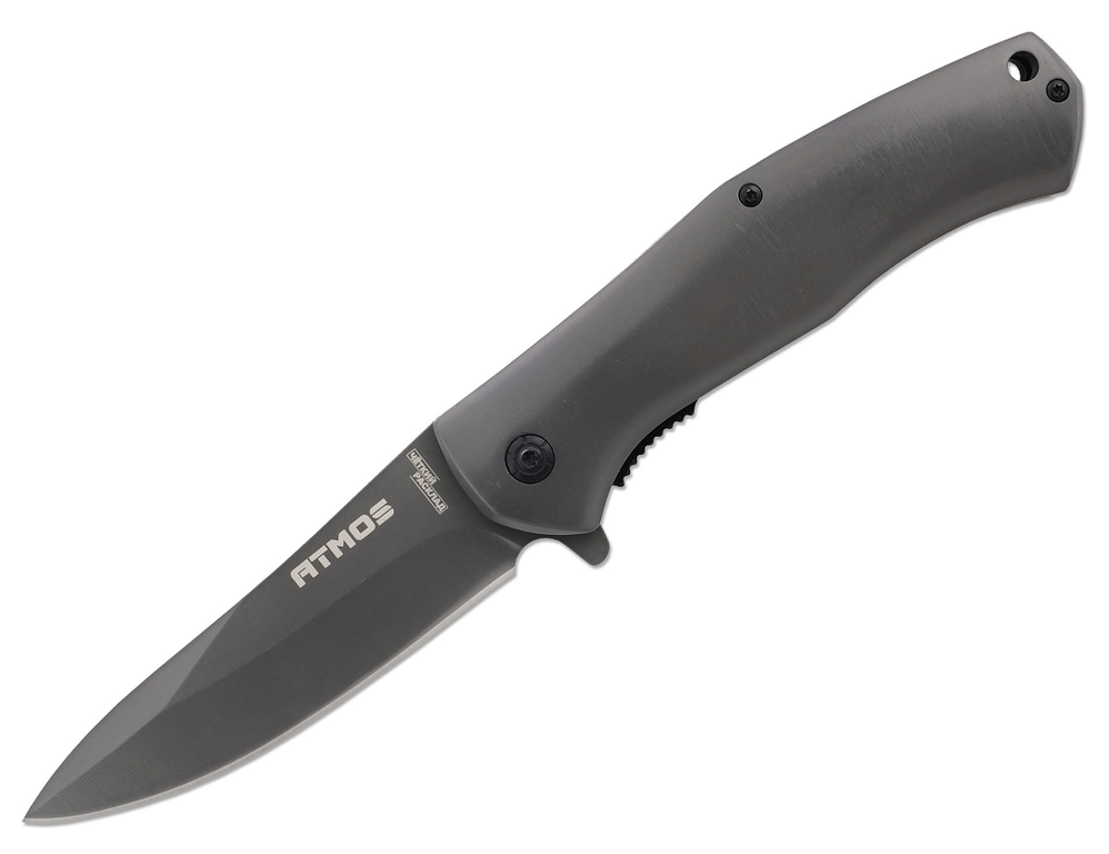 Нож полуавтоматический Ножемир "Чёткий расклад" Atmos (A-188) концептуальная и стильная модель. Оригинальный клинок "drop point" с небольшим вогнутым участком и фальшлезвием на обухе, обладает превосходными режущими показателями. Для дополнительной защиты от воздействия влаги и мелких механических повреждений его поверхность отделана антибликовым покрытием. Удобная рукоять обтекаемой формы выполнена из металла. Складной механизм оснащён замком, надёжно удерживающим клинок в рабочем положении без люфта. На тыльной стороне рукояти предусмотрена клипса для крепления за край пояса или кармана.
