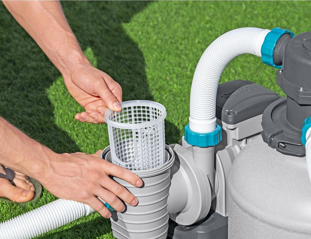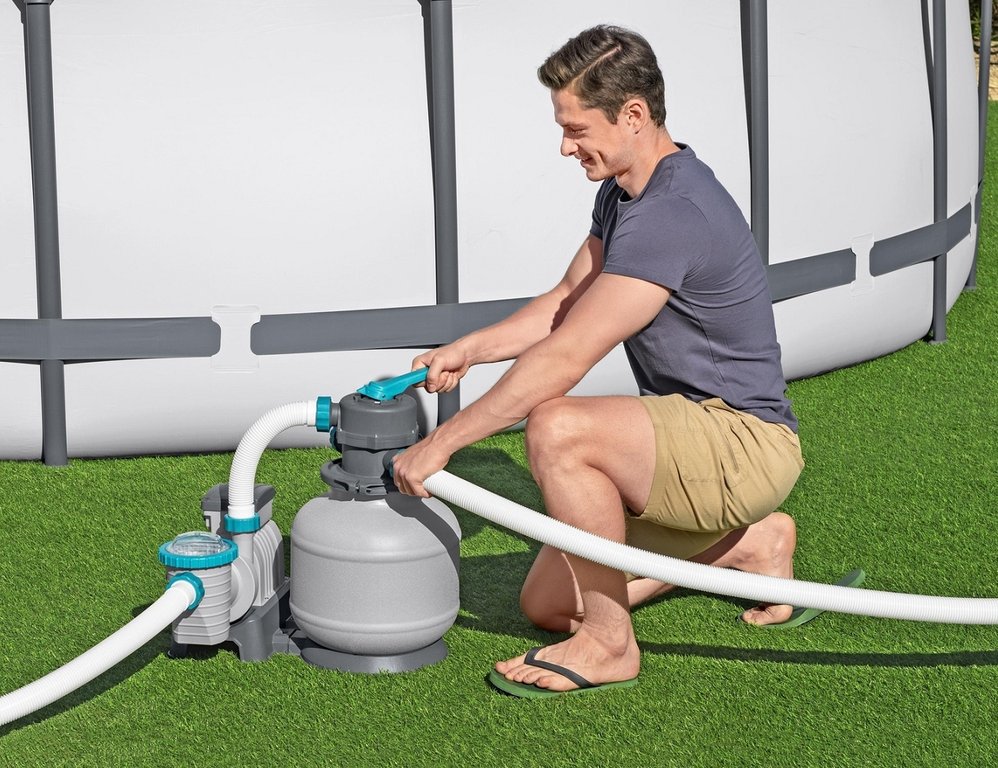 Для фильтрации требуется песок (0,45-0,85 мм) 20 кг или фильтрующие шарики Polysphere #58475, в комплект не входят
