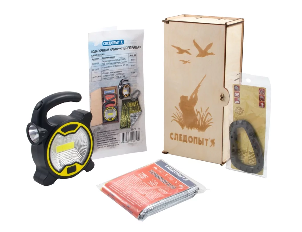 Подарочный набор Следопыт Переправа PF-SET10 оригинальный подарок с мужским характером. Подойдёт для любого праздника или знаменательного события. Включает в себя самые необходимые вещи, которые пригодятся вам в любом походе или выезде на природу. Все компоненты подарочного бокса упакованы в коробку из берёзовой фанеры с лазерной гравировкой, ручная сборка.