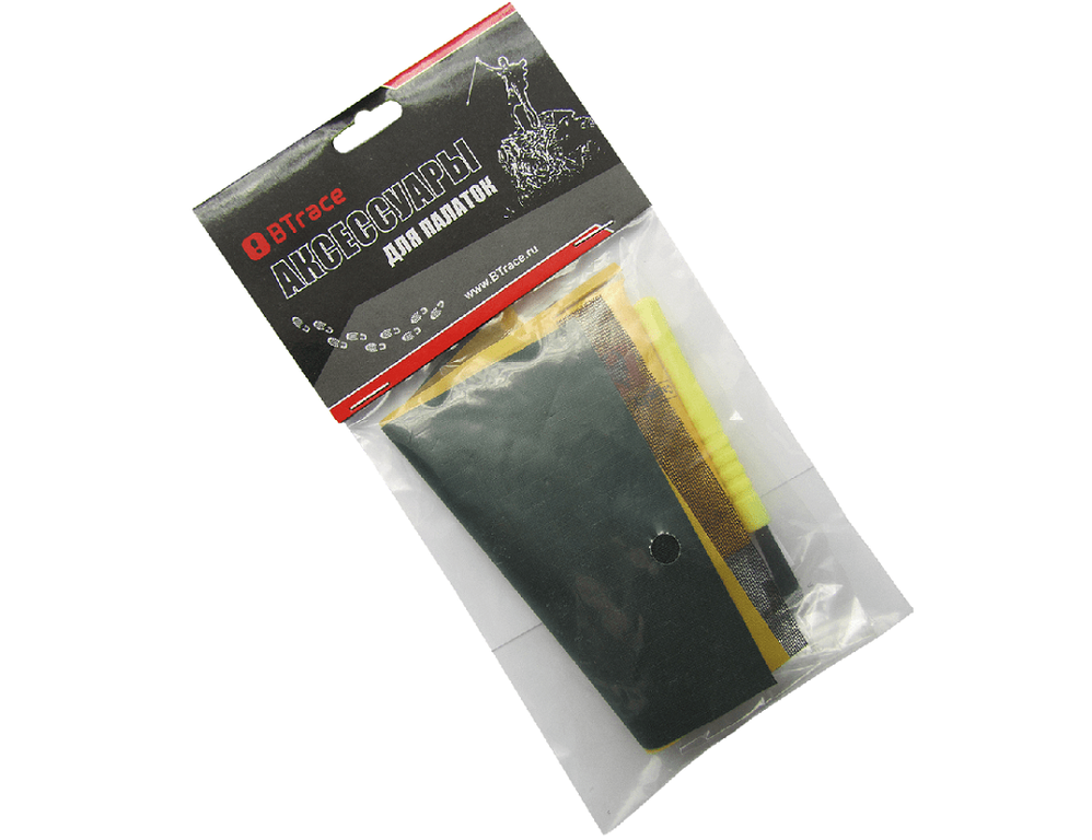 Ремкомплект BTrace для палатки (заплатки всех тканей + клей). Настоящая "Скорая помощь" для вашей палатки. Поможет быстро и эффективно устранить любое повреждение: порез, прожжённый след, прорыв и другое. В удобной и компактной форме здесь есть всё необходимое, чтобы восстановить практически любую палатку.