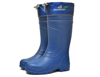 Утеплённые женские сапоги Nordman Light изготовлены из материала Эва. Пористая структура делает модель весьма лёгкой и тёплой. Съёмный вкладыш из фольгированного полотна сохраняет комфортное тепло для ног при температуре воздуха до -15 ºС. Плотная подошва хорошо амортизирует и не дубеет на морозе. Сверху сапога манжета из водонепроницаемой ткани с утягивающим шнурком.
