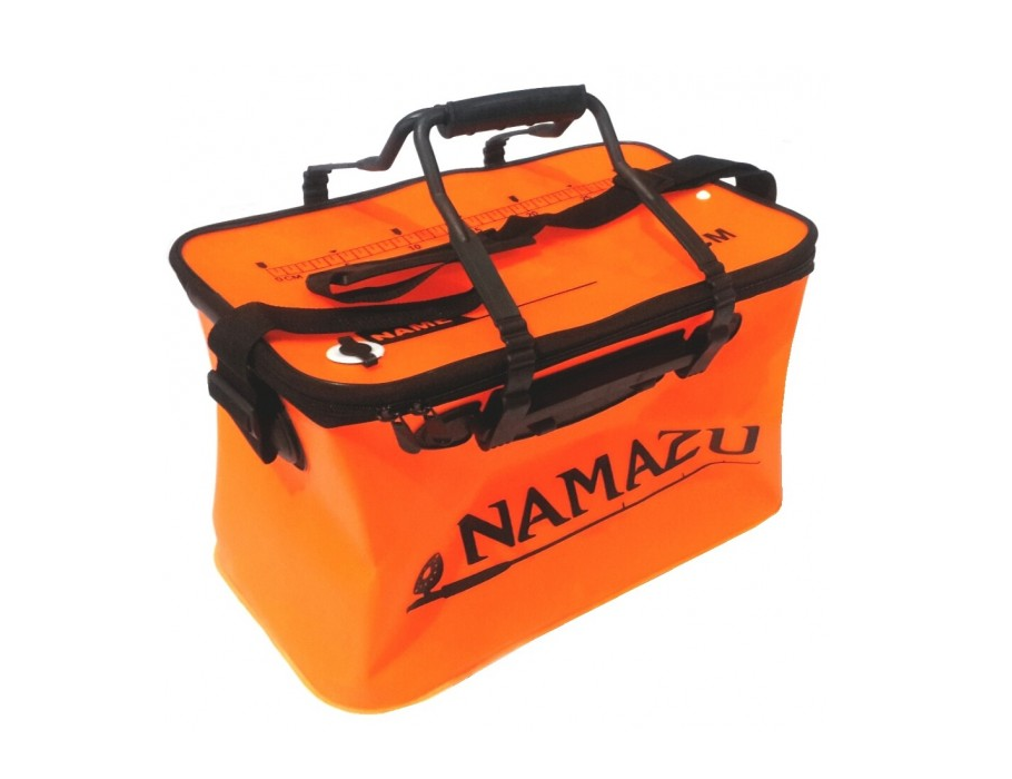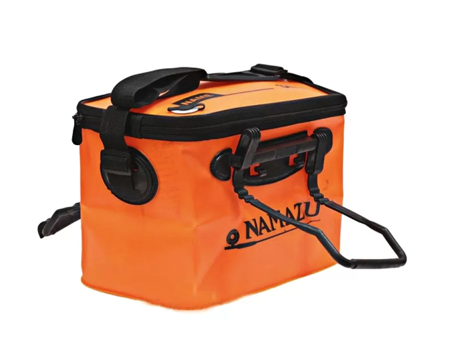Сумка-кан складная с 2 ручками пригодится в любое время года. Замешать прикормку, перевезти живца, да просто набрать воды и посадить рыбу для сохранности до дома. Компактная, лёгкая, складная сумка-кан. Полностью герметичная, выполнена из PVC. Имеется полностью открываемая крышка на надёжной молнии. Снабжена двумя ручками для переноски и лямкой для ношения на плече. Дополнительно в крышке есть отверстие для аэратора, линейка.