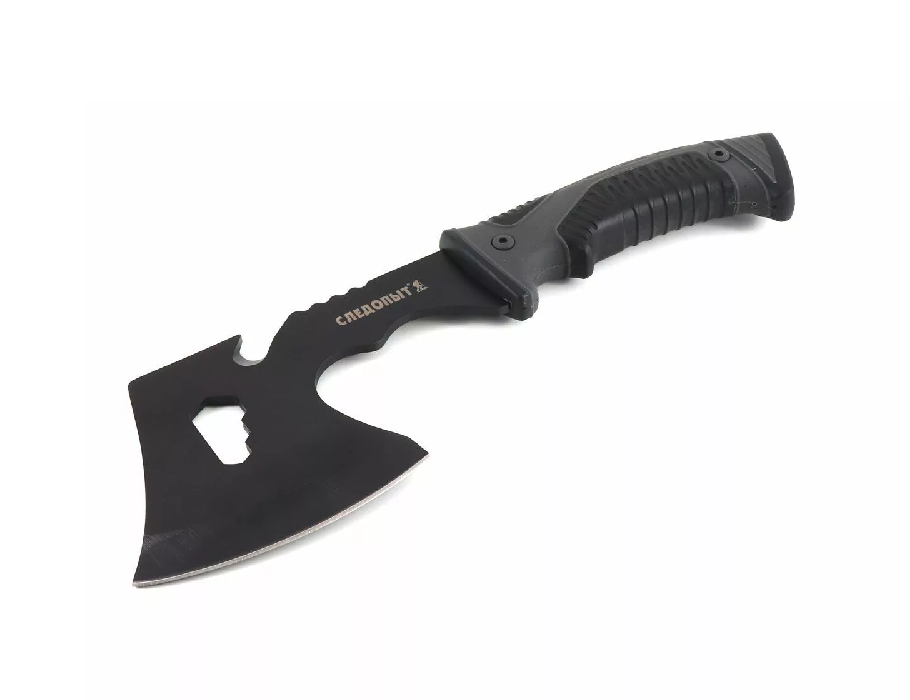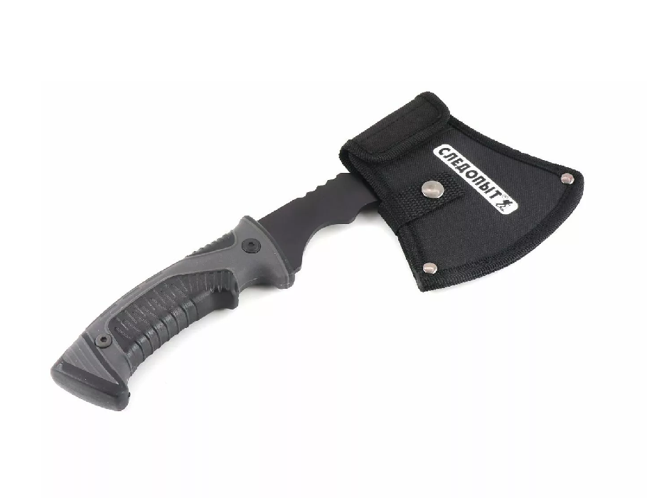 Туристический топор Следопыт PF-AT-06 в чехле — пригодится для выполнения простых хозяйственных задач. Незаменимая вещь в походах для любого человека, будь то турист, рыбак или охотник. Его можно носить на поясе, поскольку лезвие защищено специальным чехлом из толстой прочной кордуры. Габариты позволят топору легко уместиться как в рюкзаке, так и в ящике для инструментов. Топорище оснащено несъемной прорезиненной ручкой, которая предотвратит скольжение даже мокрой руки.