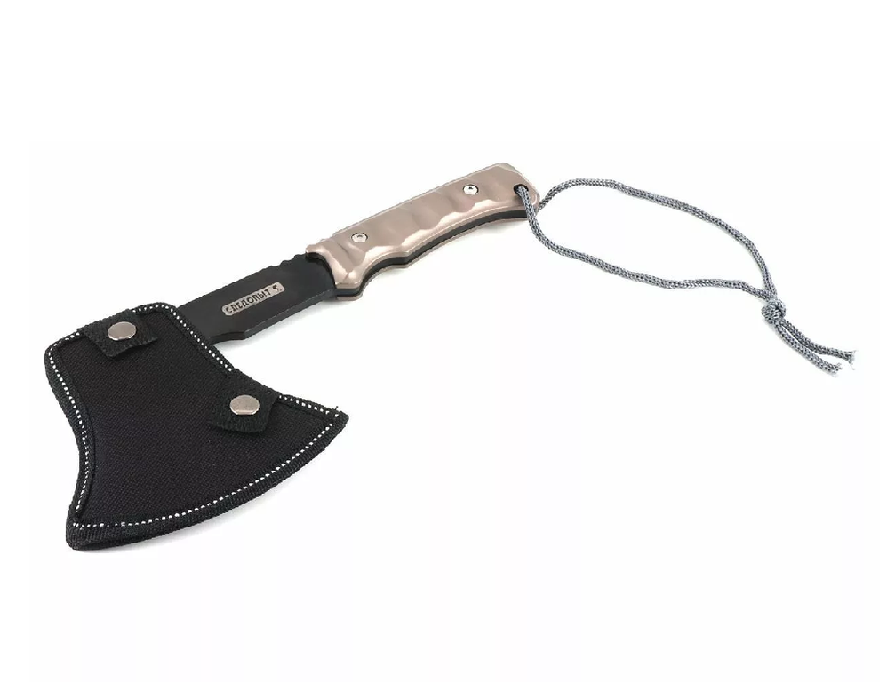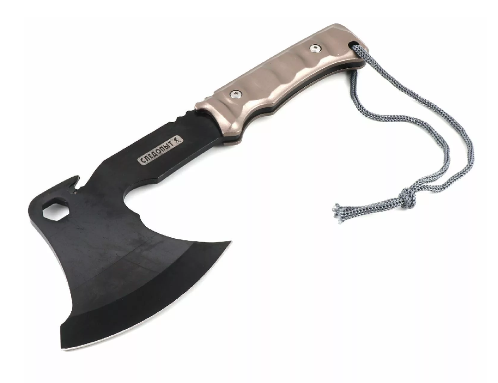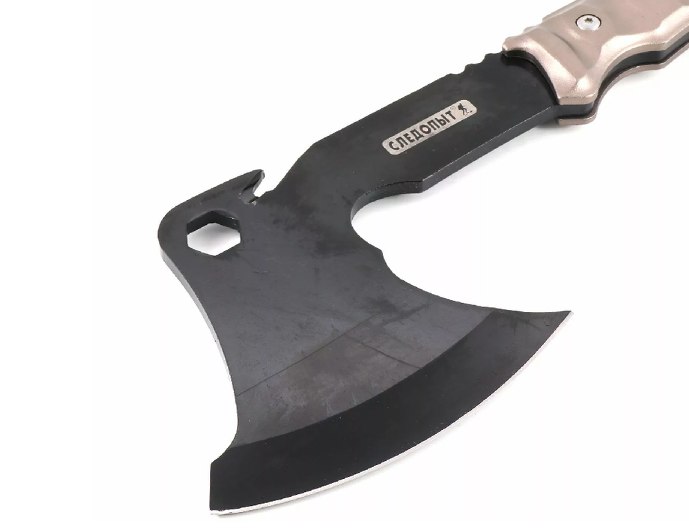 Топор туристический Следопыт PF-AT-03 в чехле, удобный стальной топор с металлической рукояткой и отверстием под петлю. Топор оборудован стропорезом и гаечным ключом. В комплекте предусмотрен чехол из кордуры для лезвия.