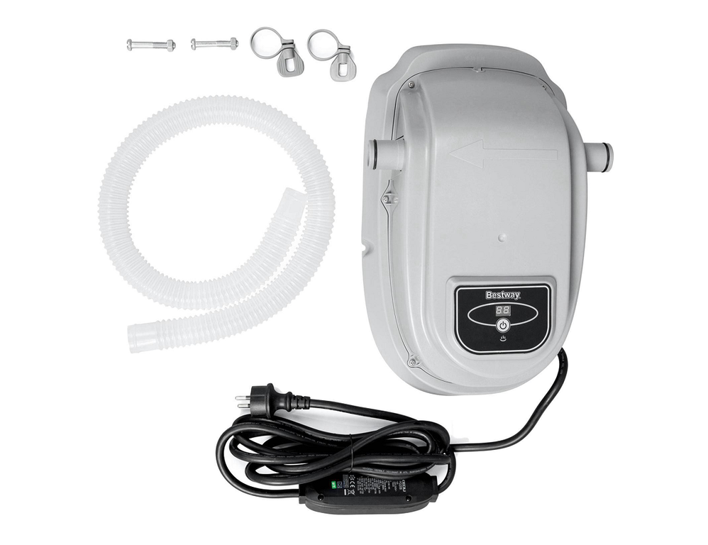 Электронагреватель для сборных бассейнов 58259 от производителя Bestway – незаменимый аксессуар, который работает от энергосети в 220 вольт. Данный нагреватель используется для сборных бассейнов Bestway диаметром до 4.57 метра, объем которых составляет от 1520 до 17035 литра.