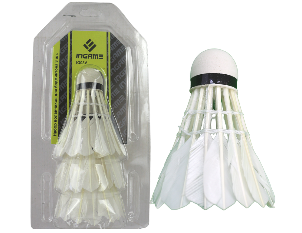 Набор воланчиков Ingame IG03V перьевых белых для игры в бадминтон. Набор состоит из 3-х воланов. Представляет собой конструкцию из 16 перьев. Головка изготовлена из полиуретана. Набор воланов для бадминтона - незаменимый атрибут для игры в бадминтон.