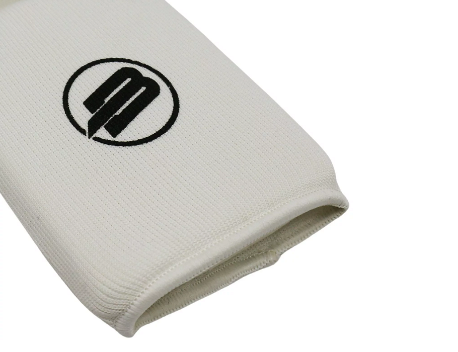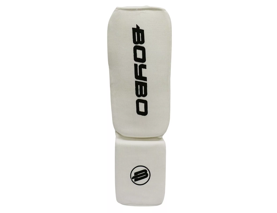 Защита на ноги для единоборств BoyBo белого цвета, полностью эластичная из хлопка и эластана. Отлично подойдёт для контактных видов спорта. Эргономичная форма защиты голени и стопы позволяет надёжно фиксировать изделие, обеспечивая стабильное положение ноги. Формованные вставки из вспененного материала служат надёжной защитой от повреждений. Предотвращает серьёзные повреждения при ударах на тренировке, гарантируя максимальную защиту.