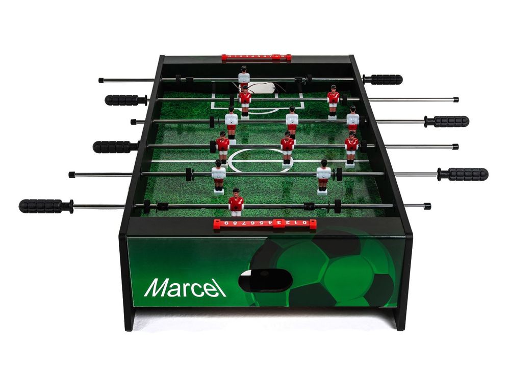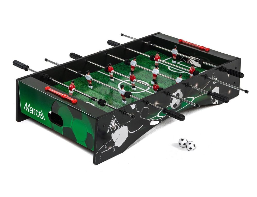 Настольный футбол DFC Marcel станет отличным развлечением дома или на даче. Игровой стол будет не только отличной покупкой для себя, но и прекрасным подарком для детей и взорслых! Стол оборудован механическим табло для счета очков. Комплектуется набором аксессуаров: 2 мяча. Корпус выполнен из специально обработанного МДФ, сверху покрытого прочным пластиком.