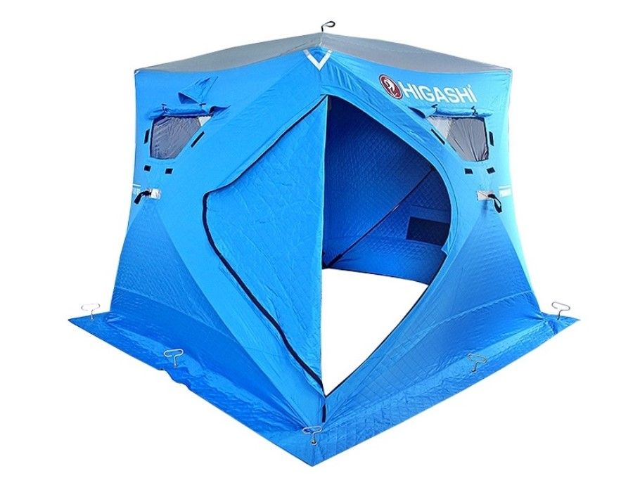 Зимняя палатка Higashi Pyramid Pro - утепленная версия палатки Higashi Pyramid. Ткань палатки окрашена в небесно-синий оттенок с внешней и внутренней стороны. Цвет приятный, нейтральный, не создает лишней тени. Дополнительно с внешней стороны предусмотрены светоотражатели. Палатка выполнена из нескольких слоев ткани Nylon 300D и утепленной прослойки «Thermal». Выполнена с использованием технологии термостежки (стеганая). Палатка имеет классическую форму усеченной пирамиды с классическими трапециевидными стенами, созданная специально для максимально эффективной защиты от сурового зимнего ветра. Модель Хигаши Пирамид Про быстро собирается и разбирается благодаря конструкции хабов или другими словами «зонтичной». Размер палатки 230х230х200 сантиметров. Длина считается по полу, включая ветрозащитные юбки. Высота 2 метра по центральному потолочному хабу. Вместимость до 4 человек.