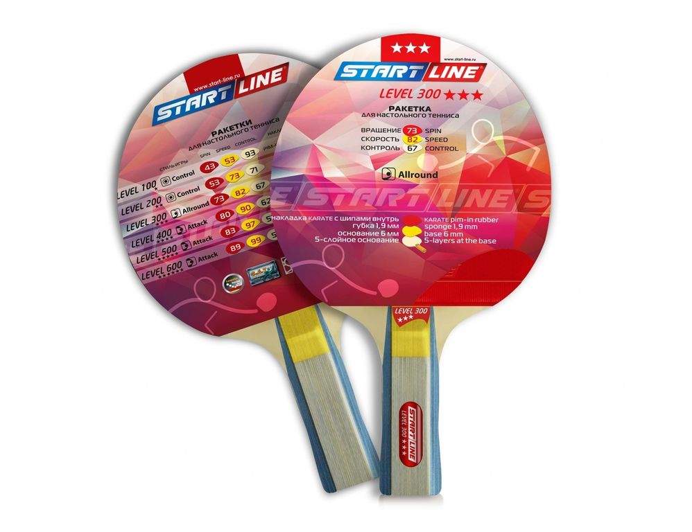 Ракетка для настольного тенниса Level 300 соответствует высокому современному стандарту качества, имеет обновленный дизайн, а также улучшенные технологические и игровые характеристики.