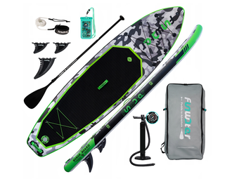 Надувной sup board Фанвотер Хонор 11 Грин также станет хорошим подарком для близкого человека. Он поможет поддержать отличную физическую форму и хорошее настроение. Корпус сапа создан по современным технологиям из прочного ПВХ материала. Рабочая сторона модели покрыта специальным противоскользящим ковриком для лучшей устойчивости райдера. Три установленных плавника придают лучшую манёвренность и управляемость даже в сильную непогоду.