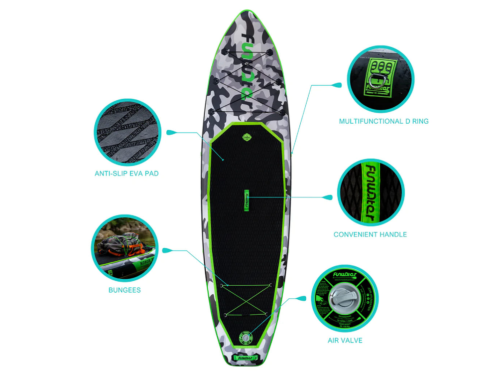 Сап доска FunWater Honor 11 Green станет отличным выбором как для новичков в мире sup-серфинга, так и для опытных спортсменов. Стильная, яркая, манёвренная доска обладает размерами 330*84*15 см (11 футов), благодаря чему подходит для различных видов спортивных занятий на воде. За счёт двух установленных карго-систем пользователь сможет взять с собой в путешествие еще больше личных вещей!