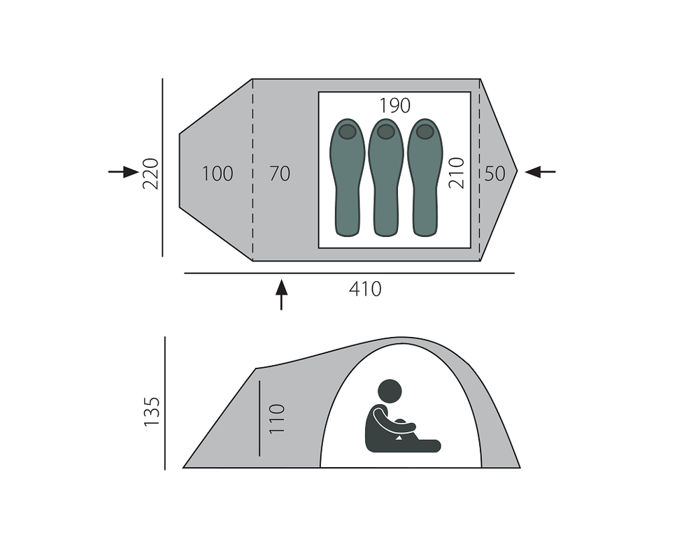 - Двухслойная палатка с тремя входами