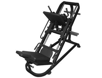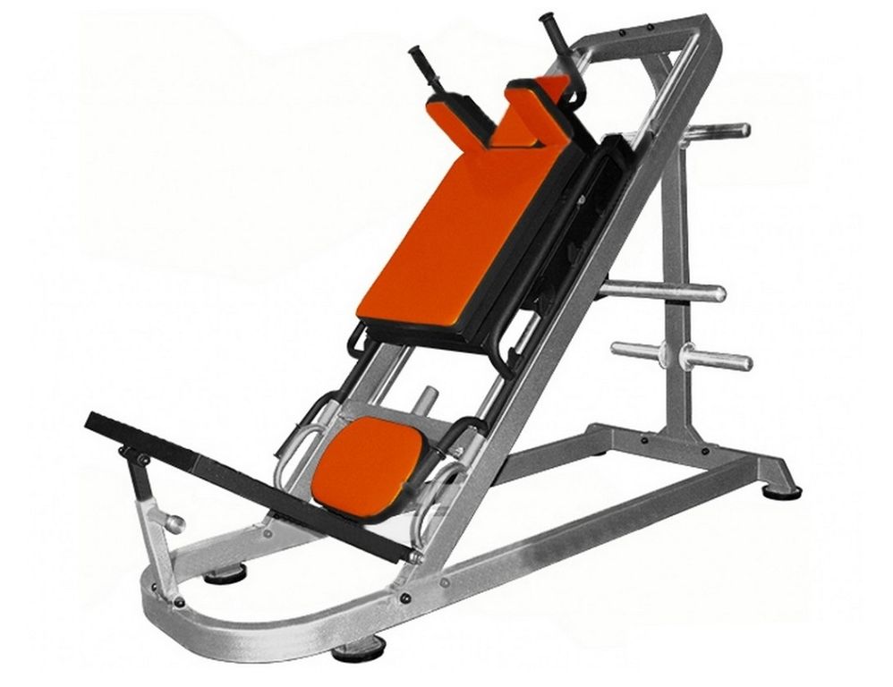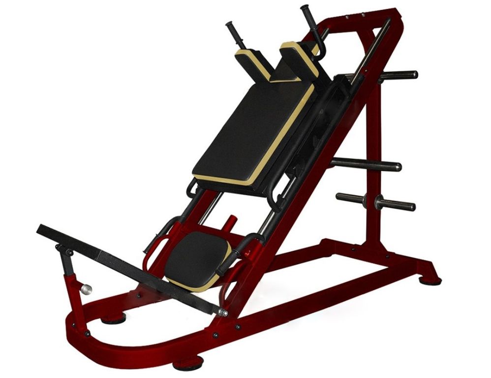 С помощью данного универсального тренажера осуществляется проработка практически всех групп мышц нижней части тела, в частности, бедер и ягодиц. Путем поворота платформы и перестановки опорной спинки он легко перестраивается из положения для гакк-приседаний в положение для жима и обратно. Для обеспечения удобства пользователя и безопасности выполнения упражнений с правильной техникой опорная спинка и платформа для упора ногами предусматривают изменение угла наклона. Установленная на 12-ти подшипниках подвижная часть характеризуется плавным ходом даже при не симметричном нагружении. Модель подходит спортсменам любого роста и веса и предназначена для залов с большой проходимостью.
