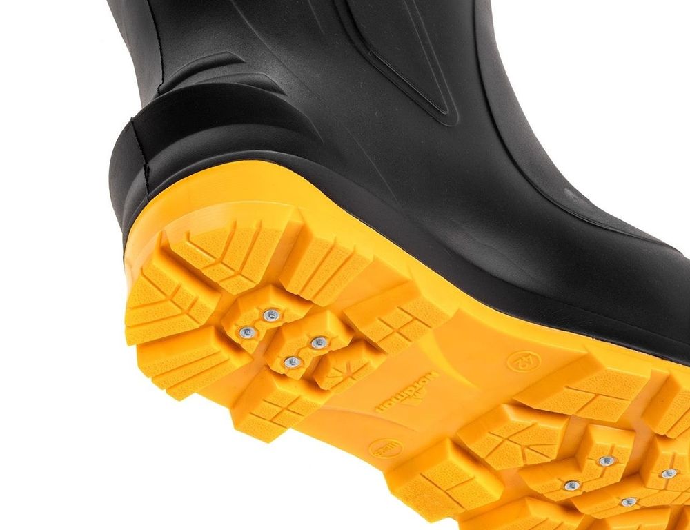 Благодаря толстой двухслойной подошве DEC+ ТЭП обеспечивается высокая степень защиты от промерзания. Подошва полностью защищена от порезов и проколов, и практически не скользит на голом льду за счет 9 встроенных и надежно закрепленных шипов. Сапог имеет ячеистую структуру дна для сбора конденсата.